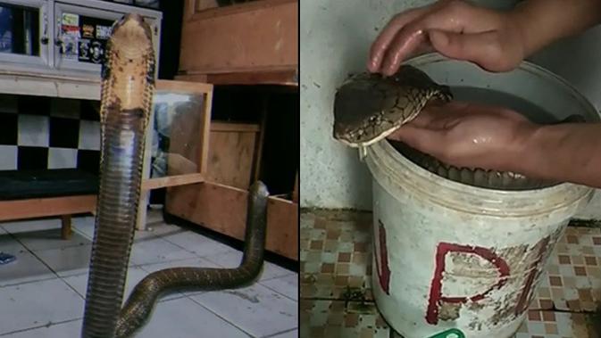 VIVA - Seekor ular kobra dengan ukuran yang cukup besar sekitar 1 meter merayap masuk ke dalam rumah warga di kawasan Kembangan Jakarta Barat pada Jumat lalu.