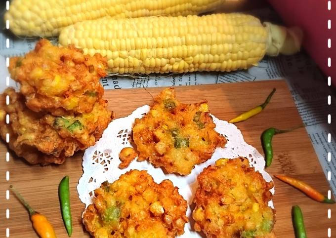 Jagung manis Tepung terigu 5-6 sendok sayurcentong nasi Daun seledri Bawang merah bawang putih masing masing Cabe merah Garam lada bubuk ketumbar penyedap telur Minyak goreng. 1 sdm tepung beras. Cara membuatnya mudah saja kamu tinggal mengumpulkan bahan-bahannya kemudian mengikuti langkah-langkah membuatnya dengan baik.